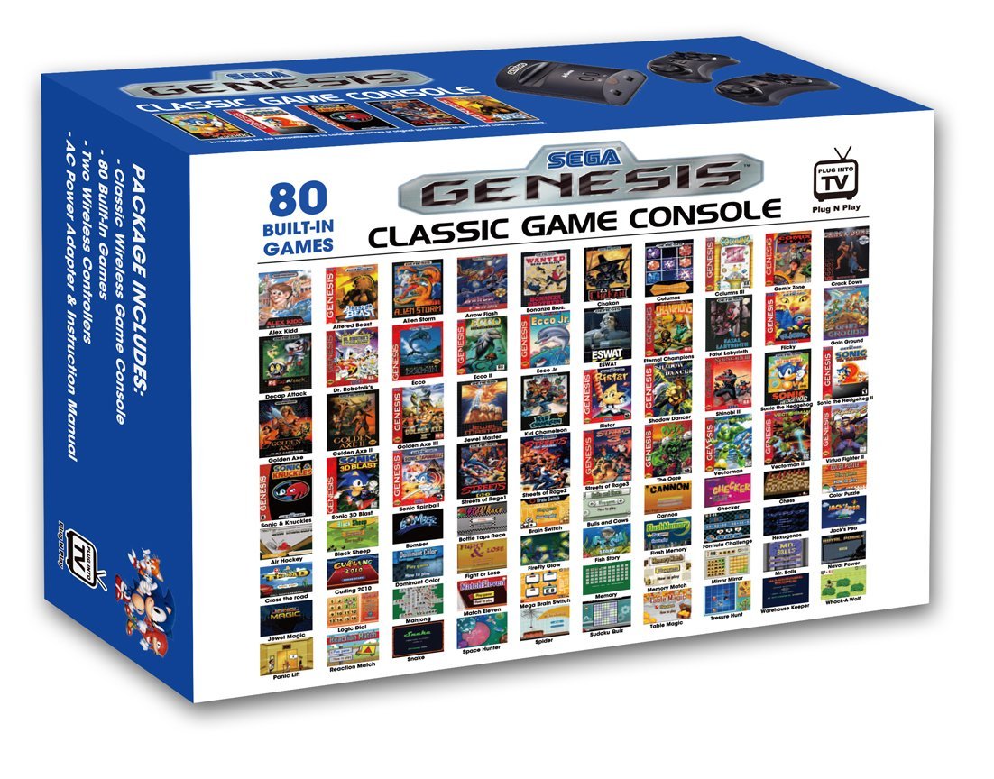AtGames, who is selling the console for $50.76 on Amazon, introduces this console with favorite titles such as Sonic the Hedgehog, Ecco, Streets of Rage, and Golden Axe. It also includes two wireless controllers and the necessary cables needed to hook up the system to the television.